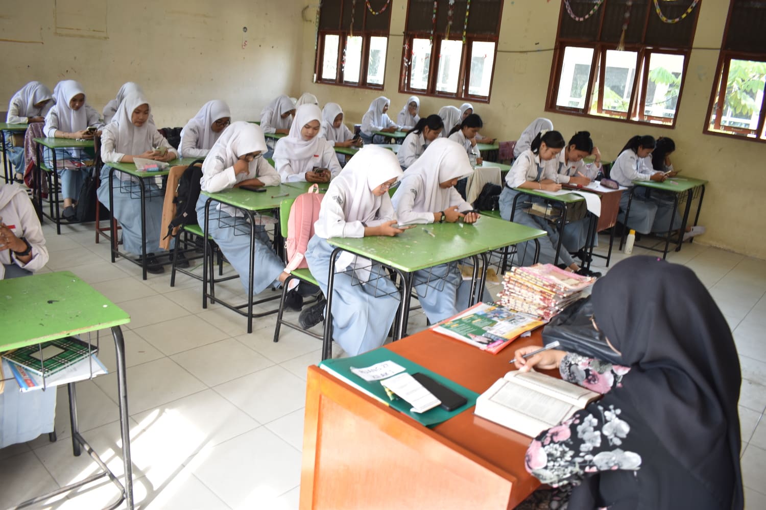 Pihak sekolah telah mempersiapkan pelaksanaan ujian dengan baik, mulai dari penyusunan jadwal, pengawasan, hingga sarana dan prasarana pendukung, sehingga kegiatan dapat berjalan lancar dan kondusif. Guru pengawas turut memastikan ujian berlangsung sesuai dengan tata tertib yang berlaku.