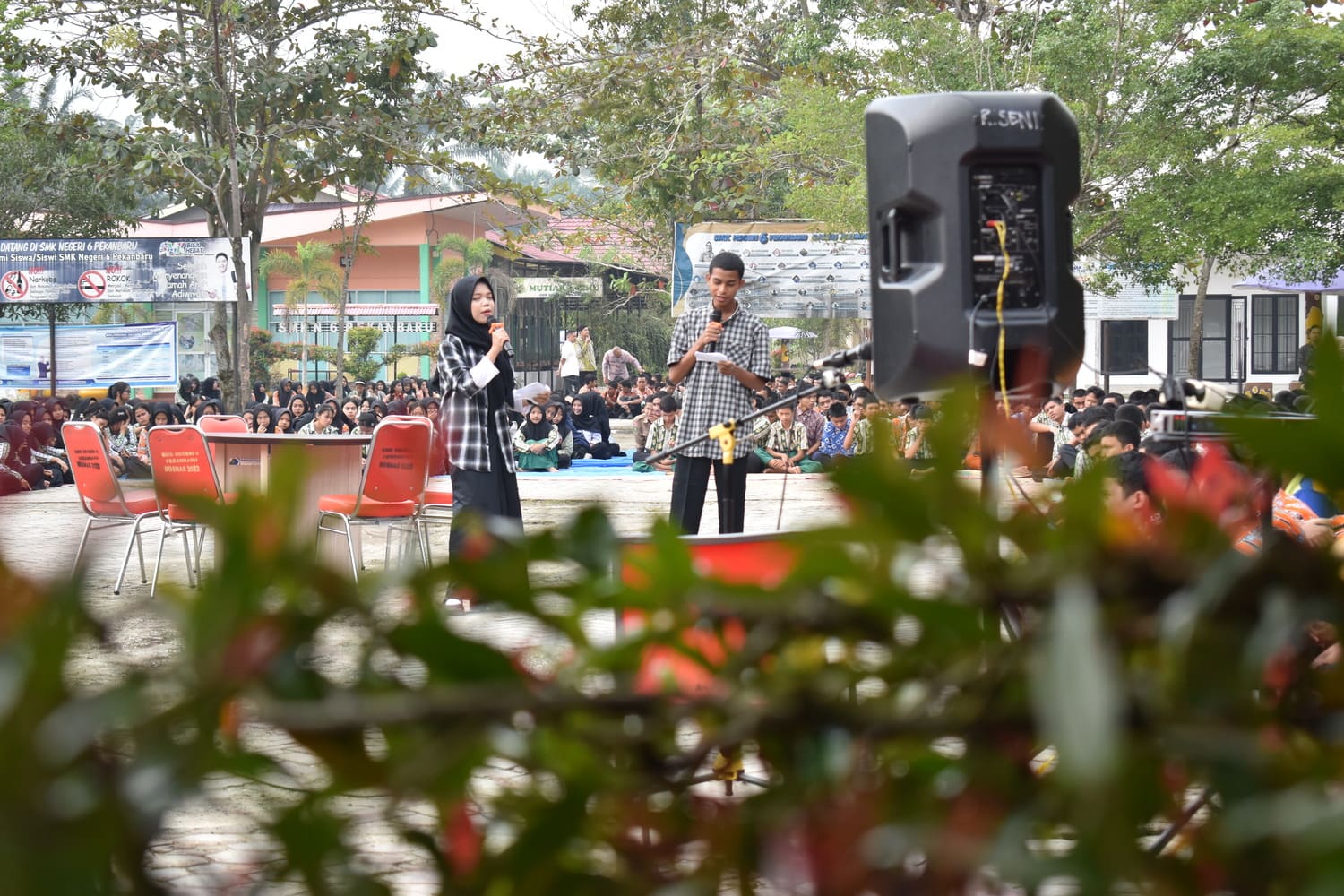 Pentas Seni (Pensi) yang dilaksanakan setiap Kamis pagi di SMKN 6 Pekanbaru kembali berlangsung meriah dengan penampilan dari Ekskul English Club. Kegiatan ini menjadi wadah bagi siswa untuk menampilkan kreativitas, minat, dan bakat, khususnya dalam pengembangan kemampuan berbahasa Inggris.