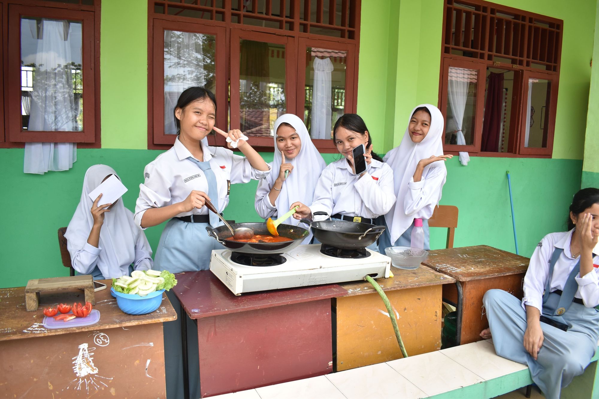 Siswa menampilkan hasil masakan khas Nusantara yang menggambarkan keberagaman kuliner Indonesia. Penilaian meliputi cita rasa, kerapian penyajian, kebersihan, dan kerja sama tim. - Penataan Kelas