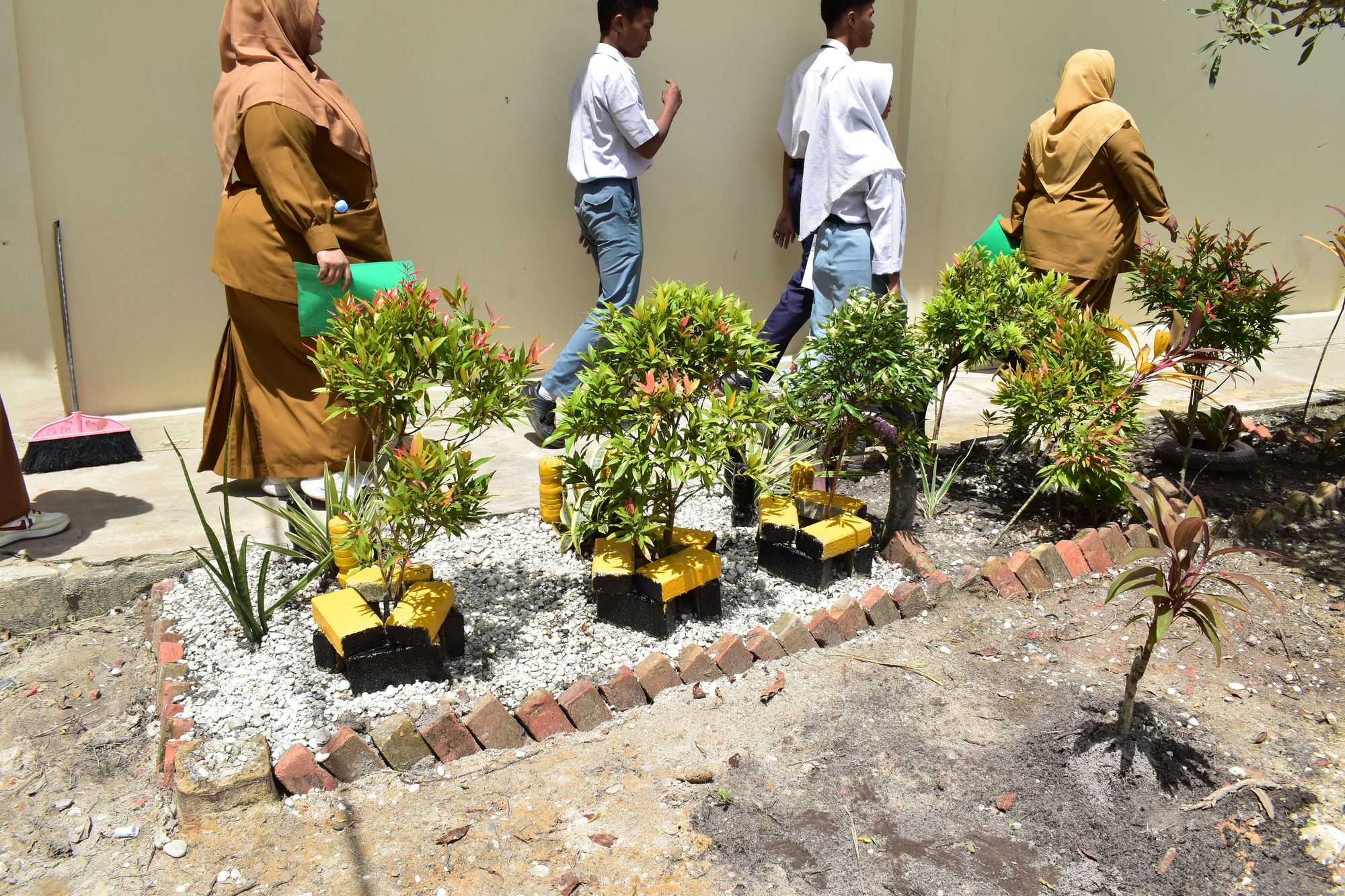 Siswa merawat dan mempercantik taman kelas masing-masing, menunjukkan kepedulian terhadap lingkungan dan keindahan sekolah. Guru menilai kerapian, kreativitas, serta keberlanjutan perawatan tanaman.