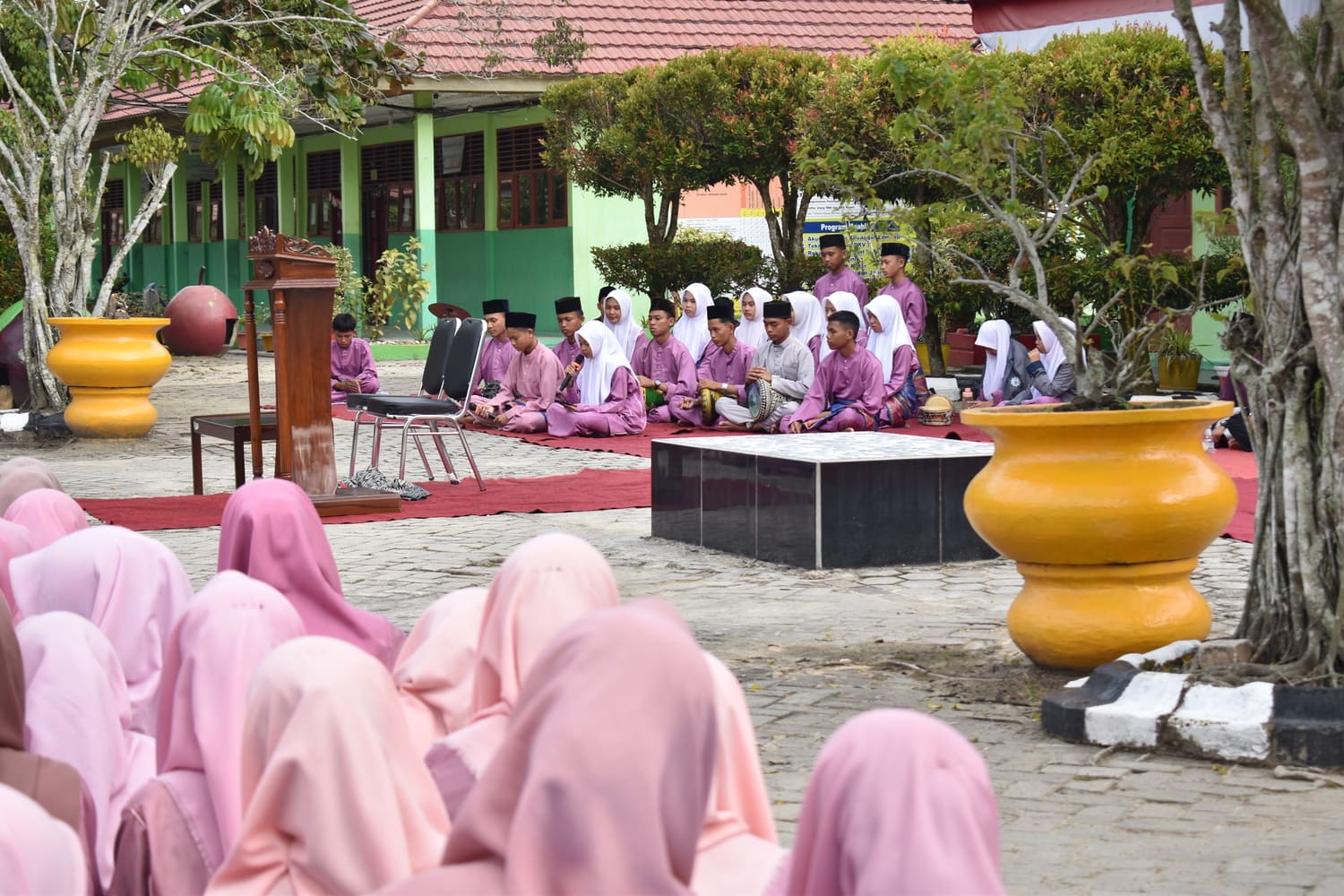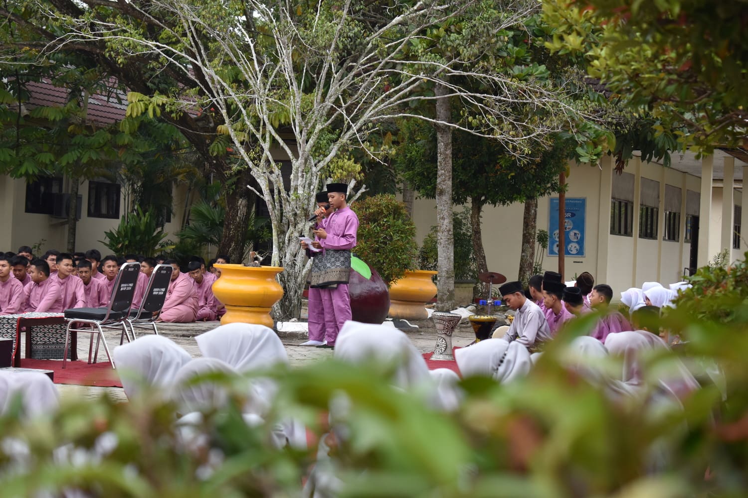 Acara diawali dengan penampilan Ekskul Tilawah yang melantunkan ayat suci Al-Qur’an dengan penuh kekhusyukan. Suasana religius semakin terasa dengan penampilan Ekskul Marawis yang menyuguhkan lantunan shalawat, sehingga menambah semarak sekaligus kekhidmatan kegiatan.