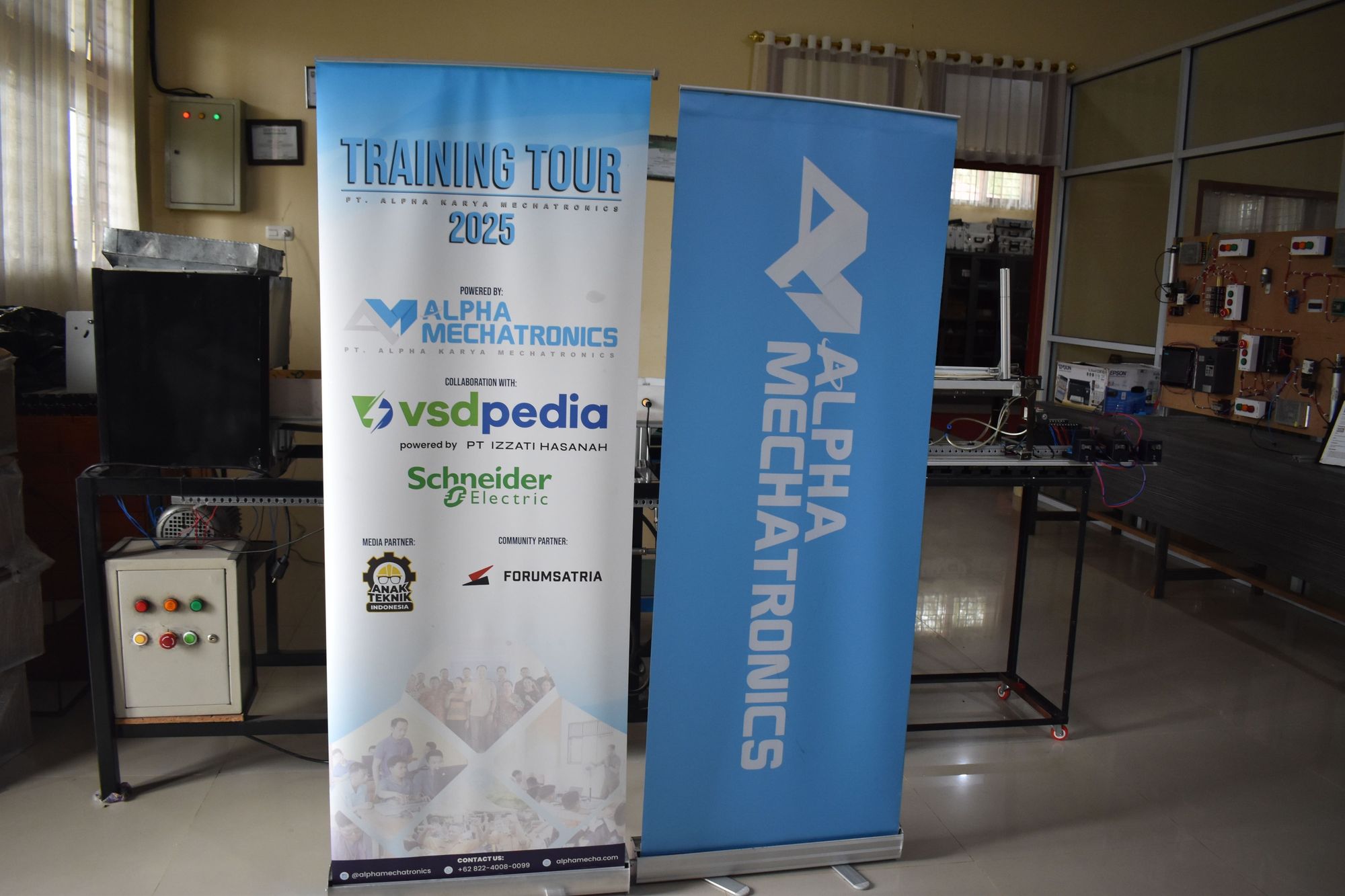 Dalam kegiatan ini, PT Alpha Karya Mechatronics tidak hanya memberikan pelatihan intensif, tetapi juga memberikan hibah berupa 80 set training kit PLC & HMI. Peralatan ini nantinya akan menjadi fasilitas pembelajaran bagi siswa dan guru, sehingga praktik pembelajaran dapat berlangsung lebih efektif, modern, dan sesuai standar industri.