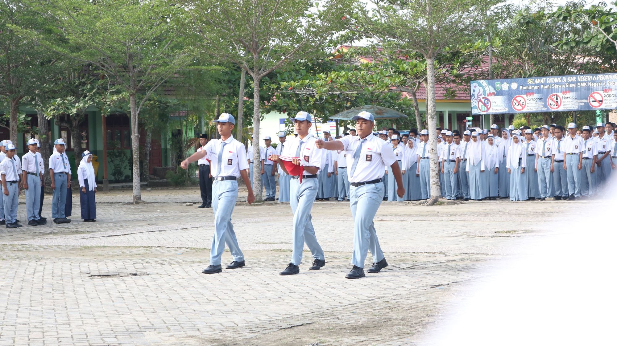 Kepala SMK Negeri 6 Pekanbaru, Ibu Elva Susanti, S.Pd., M.M., juga mengapresiasi kehadiran pihak kepolisian yang turut serta memberikan semangat dan motivasi kepada siswa untuk menjadi generasi yang disiplin, berkarakter, dan cinta tanah air.